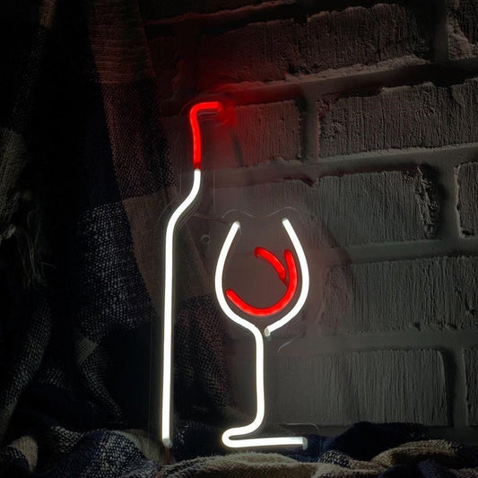 Wine bottle and glass wall neon decor will make your interior bright and up to...