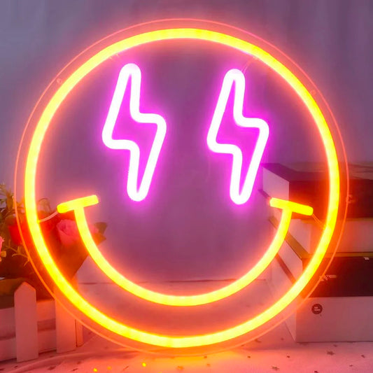 Light up your home with smiley neon signs that will inspire your mood and keep you happy all day long. Smiley neon signs are perfect for adding a fun vibe to your room, office or play set! These make great gifts for everyone, any occasion and anywhere!