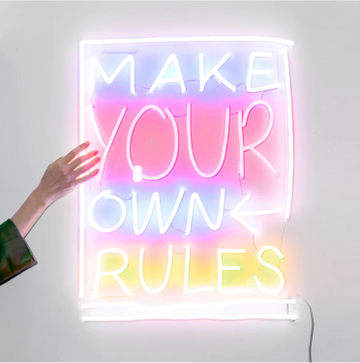 Each sign is made of a neon flex material, consisting of PVC or Silicon piping with LED lights, that is mounted on a recycled acrylic board. These materials allow us to create realistic neon signs, with bright lights and intense color, while being more durable, affordable, and sustainable than traditional neon.
